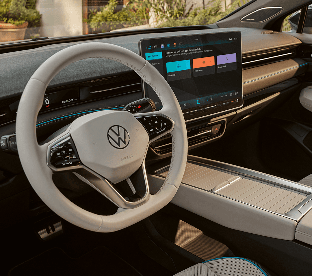 In the center of the dashboard, you'll discover a 15-inch screen, which connects you to the outside world. To get an update of your directions from the navigation system and your current speed, among other items, the augmented reality head-up display appears on your VW ID.7 windshield.
