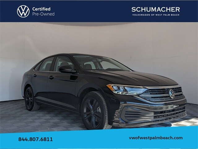 2022 Volkswagen Jetta 1.5T SE Deep Black Pearl CARFAX One-Owner. Clean CARFAX. Certified. FWD 8-Speed Automatic with Tiptronic 1.5L I-4 DI DOHC Turbocharged Titan Black w/V-Tex Leatherette Seat Trim.