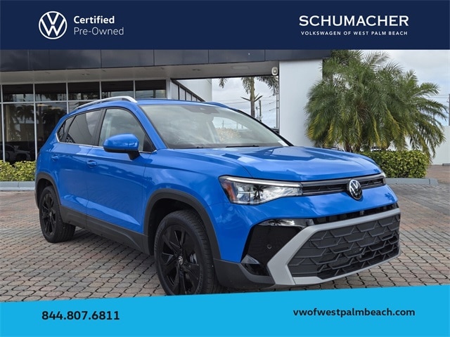 2025 Volkswagen Taos 1.5T SE Cornflower Blue CARFAX One-Owner. Clean CARFAX. Certified. FWD 8-Speed Automatic with Tiptronic 1.5L I4 Turbocharged DOHC 16V LEV3-SULEV30 174hp New Vehicle Incentives available.