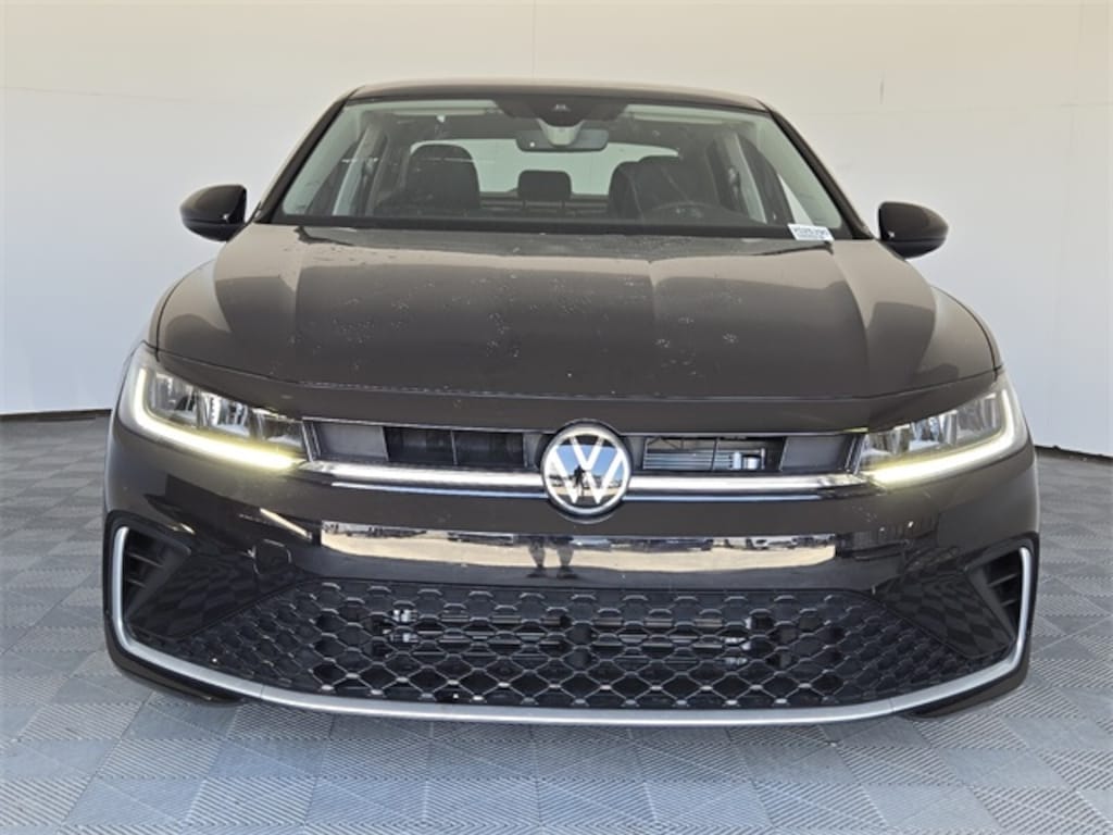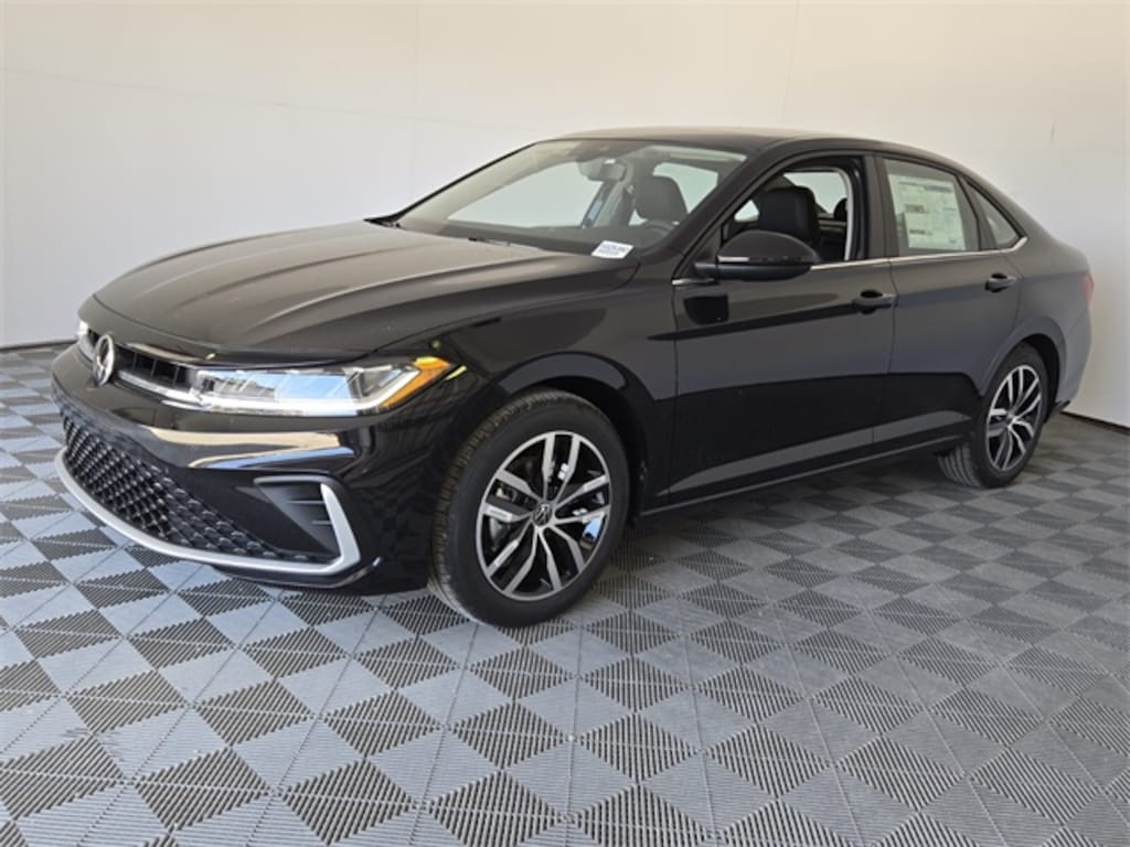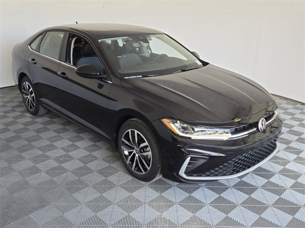 Deep Black 2025 Volkswagen Jetta 1.5T SE FWD 8-Speed Automatic with Tiptronic 1.5L I-4 DI DOHC Turbocharged Grigio & Black Artificial Leather.