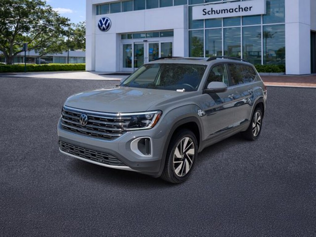 WE DELIVER TO YOUR HOME OR OFFICE !!! Panoramic Sunroof Package (Power Tilting and Sliding Panoramic Sunroof), 3rd row seats: split-bench, 4-Wheel Disc Brakes, 4-Wheel Independent Suspension, 6 Speakers, ABS brakes, Air Conditioning, Alloy wheels, AM/FM radio: SiriusXM with 360L, Auto High-beam Headlights, Auto-dimming Rear-View mirror, Automatic temperature control, Brake assist, Bumpers: body-color, Compass, Delay-off headlights, Driver door bin, Driver vanity mirror, Dual front impact airbags, Dual front side impact airbags, Electronic Stability Control, Emergency communication system: VW Car-Net Safe & Secure 5-year, Exterior Parking Camera Rear, First Aid Kit, Four wheel independent suspension, Front anti-roll bar, Front Bucket Seats, Front Center Armrest, Front dual zone A/C, Front fog lights, Front reading lights, Fully automatic headlights, Garage door transmitter: HomeLink, Heated and Actively Ventilated Front Bucket Seats, Heated door mirrors, Heated front seats, Heated steering wheel, Heavy Duty Trunk Liner with VW CarGo Blocks, Illuminated entry, Low tire pressure warning, Occupant sensing airbag, Outside temperature display, Overhead airbag, Overhead console, Panic alarm, Passenger door bin, Passenger vanity mirror, Perforated V-Tex Leatherette Seating Surfaces, Power door mirrors, Power driver seat, Power Liftgate, Power steering, Power windows, Radio data system, Radio: MIB3 Composition Media, Rain sensing wipers, Rear air conditioning, Rear anti-roll bar, Rear reading lights, Rear seat center armrest, Rear window defroster, Rear window wiper, Remote keyless entry, Retractable Privacy Cover For Cargo Area, Roadside Assistance Kit, Rubber Mats Kit (2-Row), Security system, Speed control, Speed-sensing steering, Split folding rear seat, Spoiler, Steering wheel mounted audio controls, Tachometer, Telescoping steering wheel, Tilt steering wheel, Traction control, Trip computer, Turn signal indicator mirrors, Variably intermittent wipers, Ventilated front seats, VW Care, and Wheels: 20" 2-Tone Machined Alloy. Price includes: $1000 - Customer Bonus. Exp. 04/30/2026