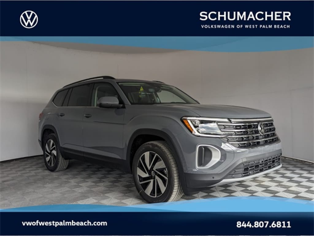 WE DELIVER TO YOUR HOME OR OFFICE !!!....Back up Camera, Bluetooth, Panoramic Sunroof Package (Power Tilting & Sliding Panoramic Sunroof), 3rd row seats: split-bench, 4-Wheel Disc Brakes, 6 Speakers, ABS brakes, Air Conditioning, Alloy wheels, AM/FM radio: SiriusXM with 360L, Auto High-beam Headlights, Auto-dimming Rear-View mirror, Automatic temperature control, Brake assist, Bumpers: body-color, Compass, Delay-off headlights, Driver door bin, Driver vanity mirror, Dual front impact airbags, Dual front side impact airbags, Electronic Stability Control, Emergency communication system, Exterior Parking Camera Rear, First Aid Kit, Four wheel independent suspension, Four-wheel Independent Suspension, Front anti-roll bar, Front Bucket Seats, Front Center Armrest, Front dual zone A/C, Front fog lights, Front reading lights, Fully automatic headlights, Garage door transmitter: HomeLink Connect, Heated & Actively Ventilated Front Bucket Seats, Heated door mirrors, Heated front seats, Heated steering wheel, Heavy Duty Trunk Liner w/VW CarGo Blocks, Illuminated entry, Low tire pressure warning, Occupant sensing airbag, Outside temperature display, Overhead airbag, Overhead console, Panic alarm, Passenger door bin, Passenger vanity mirror, Perforated V-Tex Leatherette Seating Surfaces, Power door mirrors, Power driver seat, Power Liftgate, Power steering, Power windows, Radio data system, Radio: MIB3 Composition Media, Rain sensing wipers, Rear air conditioning, Rear anti-roll bar, Rear reading lights, Rear seat center armrest, Rear window defroster, Rear window wiper, Remote keyless entry, Retractable Privacy Cover for Cargo Area, Roadside Assistance Kit, Rubber Mats Kit (2-row), Security system, Speed control, Speed-sensing steering, Split folding rear seat, Spoiler, Steering wheel mounted audio controls, Tachometer, Telescoping steering wheel, Tilt steering wheel, Traction control, Trip computer, Turn signal indicator mirrors, Variably intermittent wipers, Ventilated front seats, VW Care, and Wheels: 20" 2-Tone Machined Alloy. 20/26 City/Highway MPG Price includes: $1500 - Retail Customer Bonus. Exp. 01/05/2026