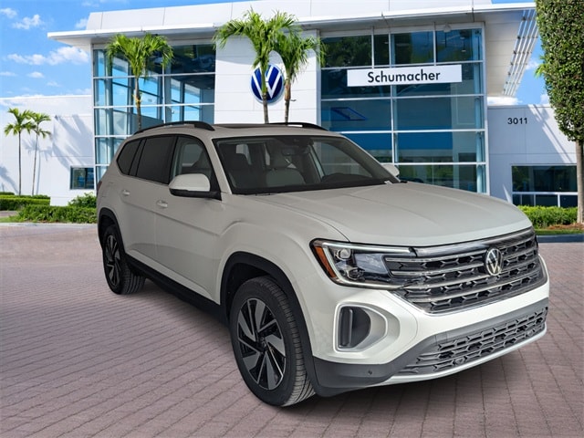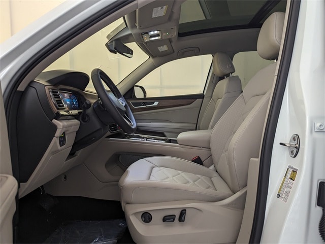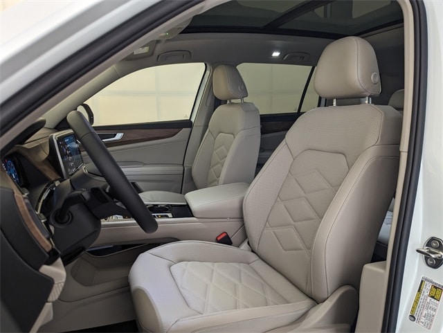 WE DELIVER TO YOUR HOME OR OFFICE !!!....Back up Camera, Bluetooth, Panoramic Sunroof Package (Power Tilting & Sliding Panoramic Sunroof), 3rd row seats: split-bench, 4-Wheel Disc Brakes, 4-Wheel Independent Suspension, 6 Speakers, ABS brakes, Air Conditioning, Alloy wheels, AM/FM radio: SiriusXM with 360L, Auto High-beam Headlights, Auto-dimming Rear-View mirror, Automatic temperature control, Brake assist, Bumpers: body-color, Compass, Delay-off headlights, Driver door bin, Driver vanity mirror, Dual front impact airbags, Dual front side impact airbags, Electronic Stability Control, Emergency communication system: VW Car-Net Safe & Secure 5-year, Exterior Parking Camera Rear, First Aid Kit, Four wheel independent suspension, Front anti-roll bar, Front Bucket Seats, Front Center Armrest, Front dual zone A/C, Front fog lights, Front reading lights, Fully automatic headlights, Garage door transmitter: HomeLink, Heated & Actively Ventilated Front Bucket Seats, Heated door mirrors, Heated front seats, Heated steering wheel, Heavy Duty Trunk Liner w/VW CarGo Blocks, Illuminated entry, Low tire pressure warning, Occupant sensing airbag, Outside temperature display, Overhead airbag, Overhead console, Panic alarm, Passenger door bin, Passenger vanity mirror, Perforated V-Tex Leatherette Seating Surfaces, Power door mirrors, Power driver seat, Power Liftgate, Power steering, Power windows, Radio data system, Radio: MIB3 Composition Media, Rain sensing wipers, Rear air conditioning, Rear anti-roll bar, Rear reading lights, Rear seat center armrest, Rear window defroster, Rear window wiper, Remote keyless entry, Retractable Privacy Cover For Cargo Area, Roadside Assistance Kit, Rubber Mats Kit (2-Row), Security system, Speed control, Speed-sensing steering, Split folding rear seat, Spoiler, Steering wheel mounted audio controls, Tachometer, Telescoping steering wheel, Tilt steering wheel, Traction control, Trip computer, Turn signal indicator mirrors, Variably intermittent wipers, Ventilated front seats, VW Care, and Wheels: 20" 2-Tone Machined Alloy. 20/26 City/Highway MPG Price includes: $3000 - Retail Customer Bonus. Exp. 02/02/2026