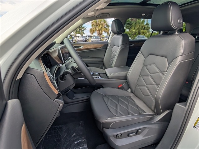 WE DELIVER TO YOUR HOME OR OFFICE !!!....Back up Camera, Bluetooth, Panoramic Sunroof Package (Power Tilting & Sliding Panoramic Sunroof), 3rd row seats: split-bench, 4-Wheel Disc Brakes, 4-Wheel Independent Suspension, 6 Speakers, ABS brakes, Air Conditioning, Alloy wheels, AM/FM radio: SiriusXM with 360L, Auto High-beam Headlights, Auto-dimming Rear-View mirror, Automatic temperature control, Brake assist, Bumpers: body-color, Compass, Delay-off headlights, Driver door bin, Driver vanity mirror, Dual front impact airbags, Dual front side impact airbags, Electronic Stability Control, Emergency communication system: VW Car-Net Safe & Secure 5-year, Exterior Parking Camera Rear, First Aid Kit, Four wheel independent suspension, Front anti-roll bar, Front Bucket Seats, Front Center Armrest, Front dual zone A/C, Front fog lights, Front reading lights, Fully automatic headlights, Garage door transmitter: HomeLink, Heated & Actively Ventilated Front Bucket Seats, Heated door mirrors, Heated front seats, Heated steering wheel, Heavy Duty Trunk Liner w/VW CarGo Blocks, Illuminated entry, Low tire pressure warning, Occupant sensing airbag, Outside temperature display, Overhead airbag, Overhead console, Panic alarm, Passenger door bin, Passenger vanity mirror, Perforated V-Tex Leatherette Seating Surfaces, Power door mirrors, Power driver seat, Power Liftgate, Power steering, Power windows, Radio data system, Radio: MIB3 Composition Media, Rain sensing wipers, Rear air conditioning, Rear anti-roll bar, Rear reading lights, Rear seat center armrest, Rear window defroster, Rear window wiper, Remote keyless entry, Retractable Privacy Cover For Cargo Area, Roadside Assistance Kit, Rubber Mats Kit (2-Row), Security system, Speed control, Speed-sensing steering, Split folding rear seat, Spoiler, Steering wheel mounted audio controls, Tachometer, Telescoping steering wheel, Tilt steering wheel, Traction control, Trip computer, Turn signal indicator mirrors, Variably intermittent wipers, Ventilated front seats, VW Care, and Wheels: 20" 2-Tone Machined Alloy. 20/26 City/Highway MPG Price includes: $3000 - Retail Customer Bonus. Exp. 02/02/2026