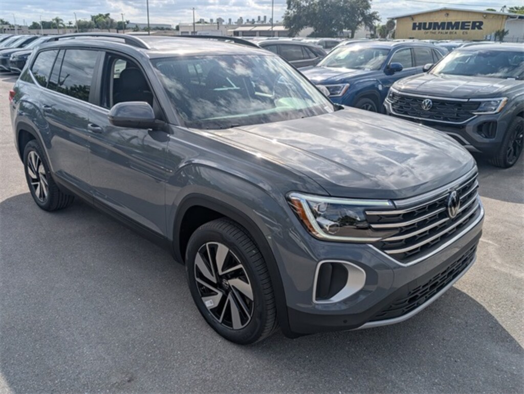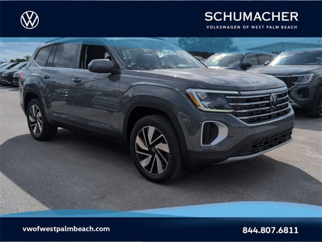 WE DELIVER TO YOUR HOME OR OFFICE !!!....Back up Camera, Bluetooth, Panoramic Sunroof Package (Power Tilting & Sliding Panoramic Sunroof), 3rd row seats: split-bench, 4-Wheel Disc Brakes, 6 Speakers, ABS brakes, Air Conditioning, Alloy wheels, AM/FM radio: SiriusXM with 360L, Auto High-beam Headlights, Auto-dimming Rear-View mirror, Automatic temperature control, Brake assist, Bumpers: body-color, Compass, Delay-off headlights, Driver door bin, Driver vanity mirror, Dual front impact airbags, Dual front side impact airbags, Electronic Stability Control, Emergency communication system, Exterior Parking Camera Rear, First Aid Kit, Four wheel independent suspension, Four-wheel Independent Suspension, Front anti-roll bar, Front Bucket Seats, Front Center Armrest, Front dual zone A/C, Front fog lights, Front reading lights, Fully automatic headlights, Garage door transmitter: HomeLink Connect, Heated & Actively Ventilated Front Bucket Seats, Heated door mirrors, Heated front seats, Heated steering wheel, Heavy Duty Trunk Liner w/VW CarGo Blocks, Illuminated entry, Low tire pressure warning, Occupant sensing airbag, Outside temperature display, Overhead airbag, Overhead console, Panic alarm, Passenger door bin, Passenger vanity mirror, Perforated V-Tex Leatherette Seating Surfaces, Power door mirrors, Power driver seat, Power Liftgate, Power steering, Power windows, Radio data system, Radio: MIB3 Composition Media, Rain sensing wipers, Rear air conditioning, Rear anti-roll bar, Rear reading lights, Rear seat center armrest, Rear window defroster, Rear window wiper, Remote keyless entry, Retractable Privacy Cover for Cargo Area, Roadside Assistance Kit, Rubber Mats Kit (2-row), Security system, Speed control, Speed-sensing steering, Split folding rear seat, Spoiler, Steering wheel mounted audio controls, Tachometer, Telescoping steering wheel, Tilt steering wheel, Traction control, Trip computer, Turn signal indicator mirrors, Variably intermittent wipers, Ventilated front seats, VW Care, and Wheels: 20" 2-Tone Machined Alloy. 20/26 City/Highway MPG Price includes: $1500 - Retail Customer Bonus. Exp. 01/05/2026