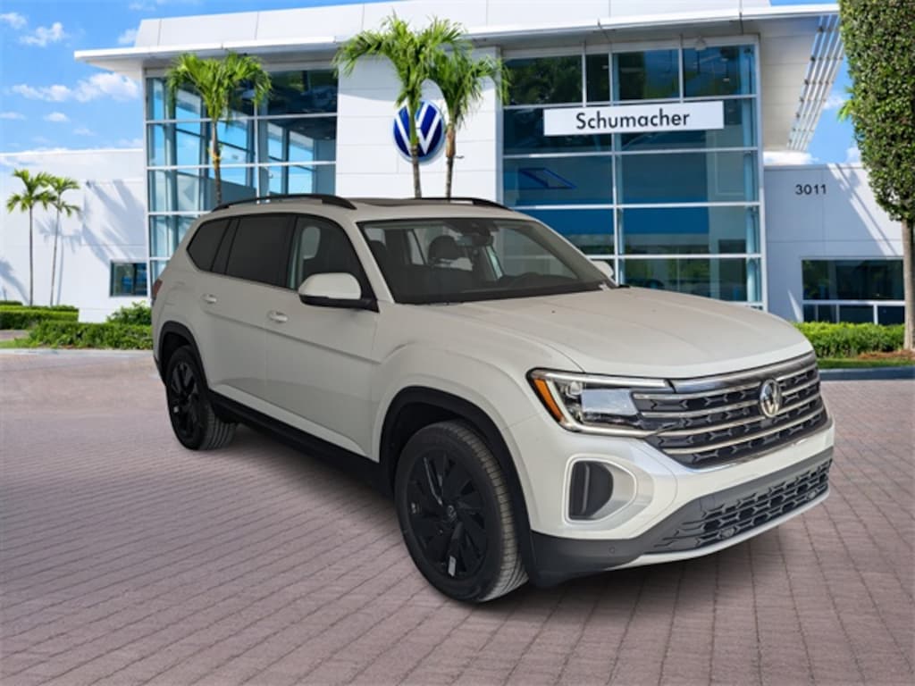 WE DELIVER TO YOUR HOME OR OFFICE !!!....Back up Camera, Bluetooth, Black Wheel Package (Wheels: 20" Multi-Spoke Black Painted Alloy), Panoramic Sunroof Package (Power Tilting & Sliding Panoramic Sunroof), 2nd-Row Dual Captain's Chairs, 3rd row seats: split-bench, 4-Wheel Disc Brakes, 4-Wheel Independent Suspension, 6 Speakers, ABS brakes, Air Conditioning, Alloy wheels, AM/FM radio: SiriusXM with 360L, Auto High-beam Headlights, Auto-dimming Rear-View mirror, Automatic temperature control, Brake assist, Bumpers: body-color, Compass, Delay-off headlights, Driver door bin, Driver vanity mirror, Dual front impact airbags, Dual front side impact airbags, Electronic Stability Control, Emergency communication system: VW Car-Net Safe & Secure 5-year, Exterior Parking Camera Rear, First Aid Kit, Four wheel independent suspension, Front anti-roll bar, Front Bucket Seats, Front Center Armrest, Front dual zone A/C, Front fog lights, Front reading lights, Fully automatic headlights, Garage door transmitter: HomeLink, Heated & Actively Ventilated Front Bucket Seats, Heated door mirrors, Heated front seats, Heated steering wheel, Heavy Duty Trunk Liner w/VW CarGo Blocks, Illuminated entry, Low tire pressure warning, Occupant sensing airbag, Outside temperature display, Overhead airbag, Overhead console, Panic alarm, Passenger door bin, Passenger vanity mirror, Perforated V-Tex Leatherette Seating Surfaces, Power door mirrors, Power driver seat, Power Liftgate, Power steering, Power windows, Radio data system, Radio: MIB3 Composition Media, Rain sensing wipers, Rear air conditioning, Rear anti-roll bar, Rear reading lights, Rear seat center armrest, Rear window defroster, Rear window wiper, Remote keyless entry, Retractable Privacy Cover For Cargo Area, Roadside Assistance Kit, Rubber Mats Kit (2-Row), Security system, Speed control, Speed-sensing steering, Split folding rear seat, Spoiler, Steering wheel mounted audio controls, Tachometer, Telescoping steering wheel, Tilt steering wheel, Traction control, Trip computer, Turn signal indicator mirrors, Variably intermittent wipers, Ventilated front seats, VW Care, and Wheels: 20" 2-Tone Machined Alloy. 20/26 City/Highway MPG Price includes: $3000 - Customer Bonus. Exp. 03/02/2026