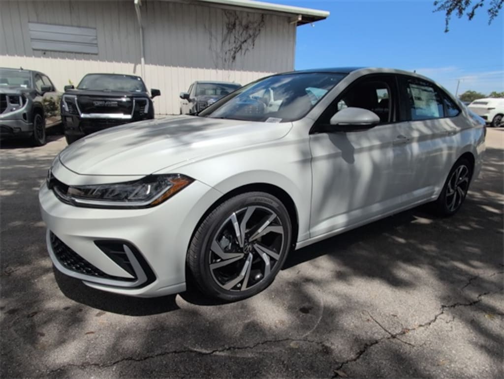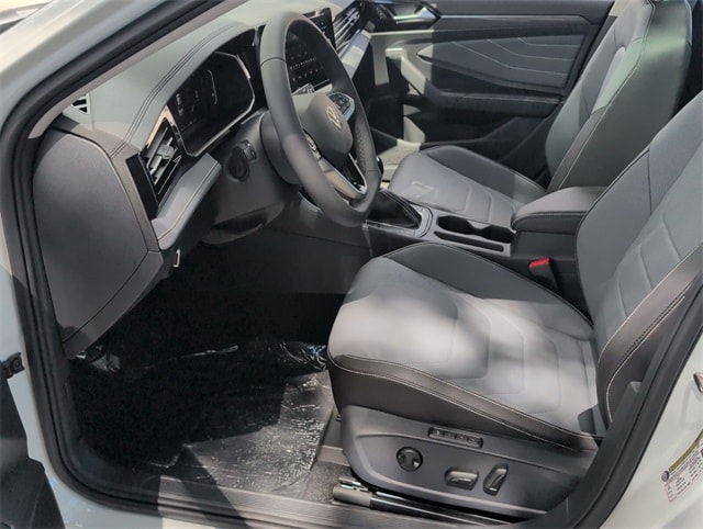White 2026 Volkswagen Jetta 1.5T SEL FWD 8-Speed Automatic with Tiptronic 1.5L I-4 DI DOHC Turbocharged Grigio & Black Leather.