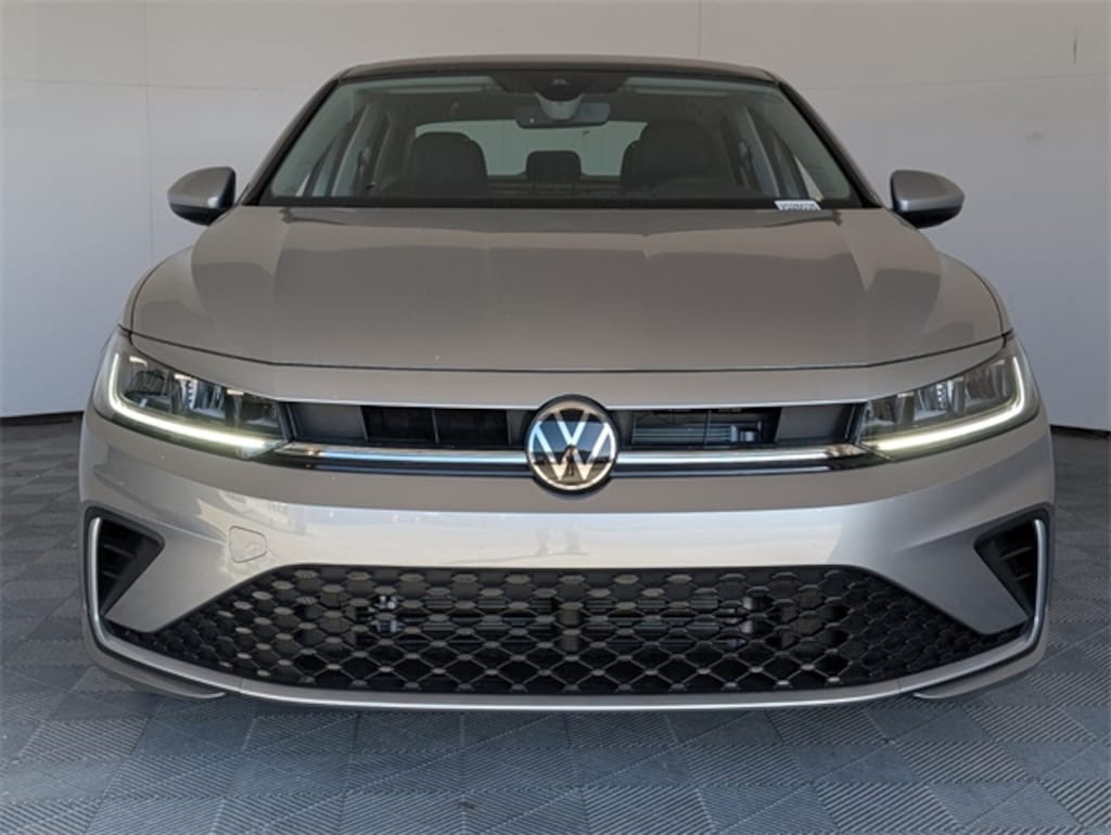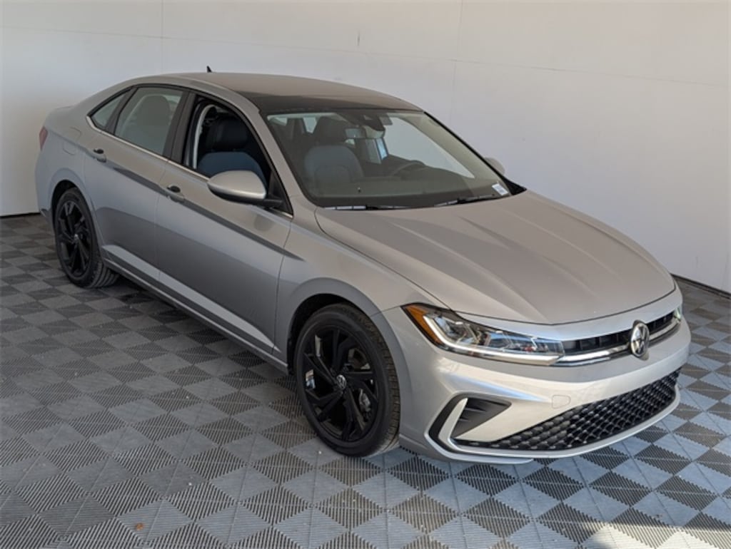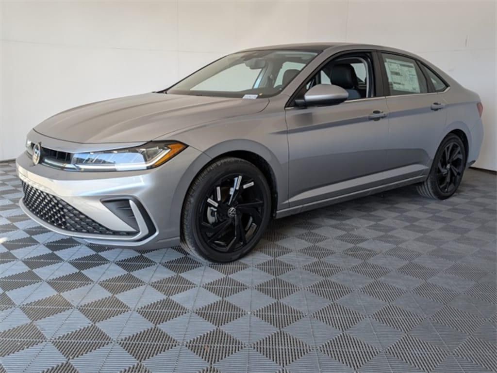 Silver 2026 Volkswagen Jetta 1.5T SE FWD 8-Speed Automatic with Tiptronic 1.5L I-4 DI DOHC Turbocharged Grigio & Black Artificial Leather.