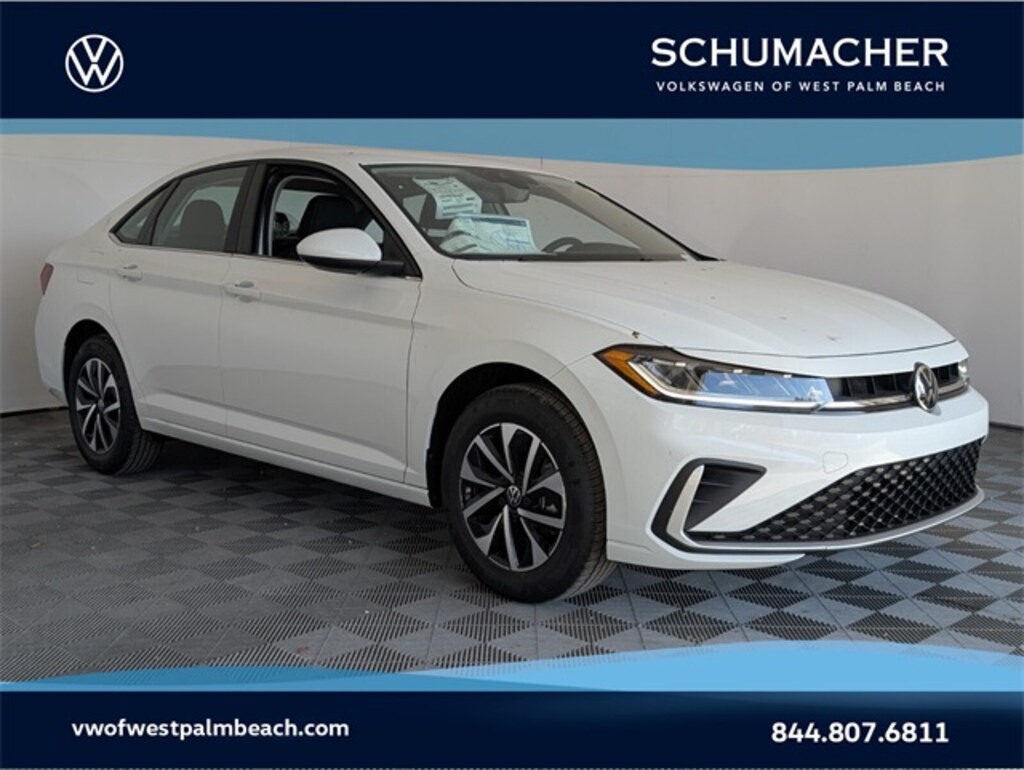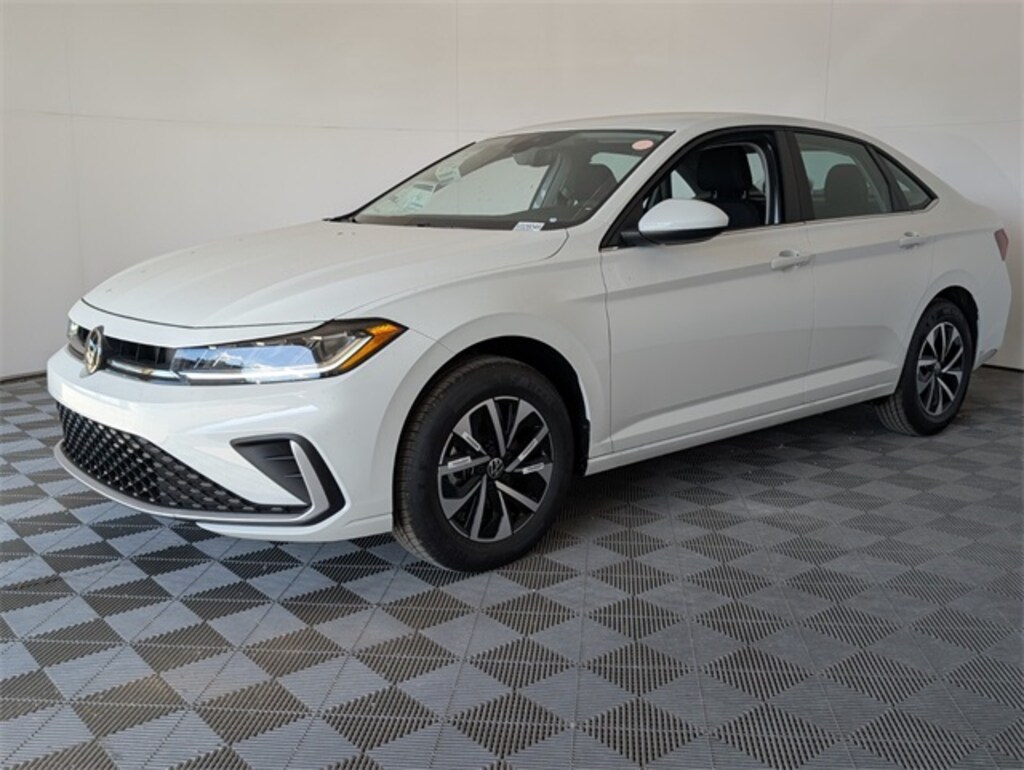 White 2026 Volkswagen Jetta 1.5T S FWD 8-Speed Automatic with Tiptronic 1.5L I-4 DI DOHC Turbocharged Black Cloth.