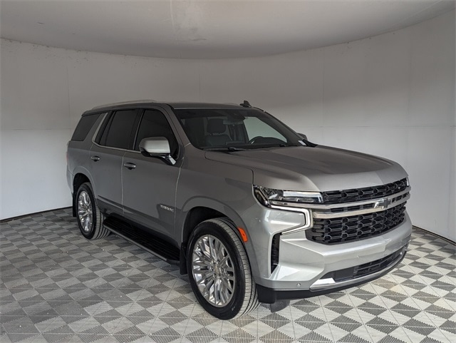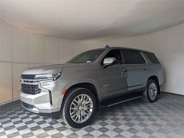 2023 Chevrolet Tahoe LS Sterling Gray Metallic Clean CARFAX. 4WD 10-Speed Automatic with Overdrive 3.0L I6 4WD, Jet Black Cloth, 1st & 2nd Row Color-Keyed Carpeted Floor Mats, 2-Speed Active Electronic AutoTrac Transfer Case, 3rd row seats: split-bench, Advanced Trailering Package, Color-Keyed Carpeting Floor Covering, Driver & Front Outboard Passenger Airbags, Driver Alert Package, Extra Capacity Cooling System, Floor Console w/Storage Area, Integrated Trailer Brake Controller, Lane Change Alert w/Side Blind Zone Alert, LED Daytime Running Lamps, Max Trailering Package, Preferred Equipment Group 1LS, Rear Cross Traffic Alert, Remote Start, Security system, SiriusXM Radio w/360L, Wrapped Steering Wheel.