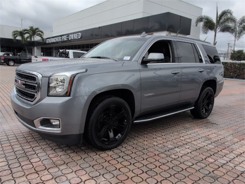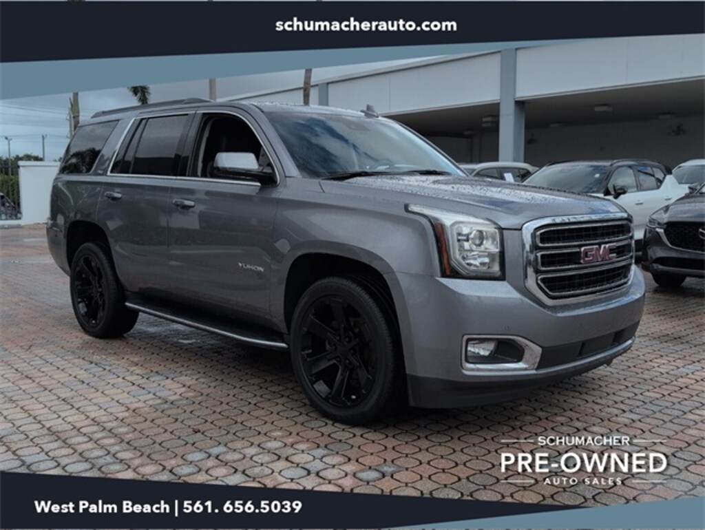 2019 GMC Yukon SLT Satin Steel Metallic CARFAX One-Owner. Clean CARFAX. RWD 6-Speed Automatic Electronic with Overdrive EcoTec3 5.3L V8 3.42 Rear Axle Ratio, 4-Wheel Antilock Disc Brakes, 5 Auxiliary 12-volt Power Outlets, Black Assist Steps w/Chrome Strip, Enhanced Driver Alert Package, Forward Collision Alert, Hands Free Power Programmable Rear Liftgate, HD Trailering Package, Heated Leather-Wrapped Steering Wheel, Inside Rear-View Auto-Dimming Mirror, Integrated Trailer Brake Controller, IntelliBeam Automatic High Beam On/Off, Lane Change Alert w/Side Blind Zone Alert, Lane Keep Assist w/Lane Departure Warning, Low Speed Forward Automatic Braking, Memory Package, Passive Entry System, Power Release 2nd Row 60/40 Split-Folding Bench Seat, Power Tilt & Telescopic Steering Column, Power-Adjustable Pedals For Accelerator & Brake, Preferred Equipment Group 4SA, Premium Smooth Ride Suspension Package, Push Button Keyless Start, Rear Cross Traffic Alert, Remote Keyless Entry, Standard Suspension Package, Universal Home Remote.