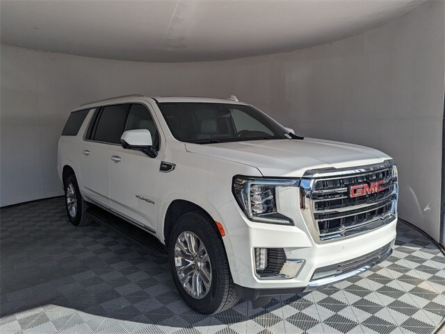2023 GMC Yukon XL SLT Summit White CARFAX One-Owner. Certified. 4WD 10-Speed Automatic with Overdrive EcoTec3 5.3L V8 4WD, 2 Presets For Outside Rearview Mirrors, 2 Presets For Power Driver Seat, 3rd Row 60/40 Power-Folding Split-Bench Seat, Adaptive Cruise Control, Bose 9-Speaker Stereo Audio System Feature, Bright Chrome Bodyside Moldings, Bright Front & Rear Door Sill Plates, Chrome Door Handles w/Body-Color Strip, Enhanced Automatic Emergency Braking, Hands-Free Power Programmable Rear Liftgate, HD Surround Vision, Heated & Ventilated Driver & Front Passenger Seats, Heated 2nd Row Outboard Position Seats, Heated Driver & Front Passenger Seats, Heated Steering Wheel, Inside Rear-View Auto-Dimming Mirror, Navigation System, Outside Heated Power-Adjustable Mirrors, Power Release 2nd Row 60/40 Split-Folding Bench Seat, Power Tilt & Telescopic Steering Column, Preferred Equipment Group 4SA, Rear Pedestrian Alert, Safety Alert Seat, SLT Luxury Package, Universal Home Remote, Wireless Charging.