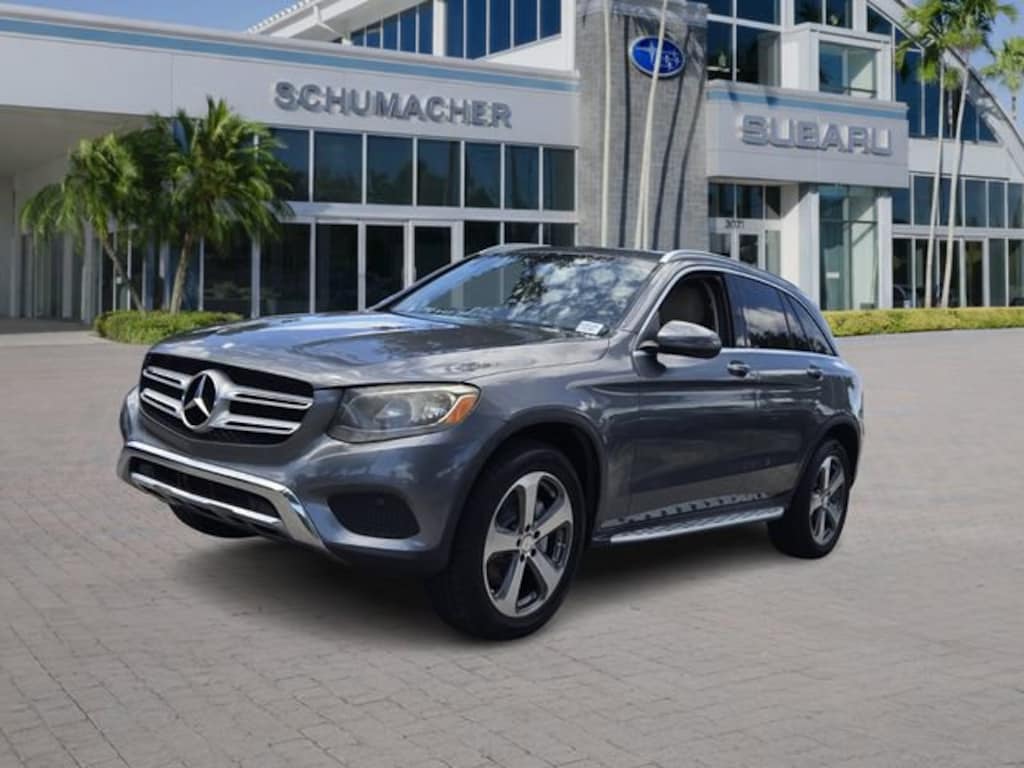 Gray 2017 Mercedes-Benz GLC 300 2.0L Turbocharged 9-Speed Automatic RWD GLC 300, 4D Sport Utility, 2.0L Turbocharged, 9-Speed Automatic, RWD, Gray, Leatherette, 18-inch Alloy Wheels, 18 5-Spoke Alloy Wheels, 3.27 Axle Ratio, 4-Wheel Disc Brakes, 6 Speakers, ABS brakes, Air Conditioning, AM/FM radio, Anti-whiplash front head restraints, Auto tilt-away steering wheel, Auto-dimming door mirrors, Auto-dimming Rear-View mirror, Automatic temperature control, Brake assist, Bumpers: body-color, CD player, Child-Seat-Sensing Airbag, Delay-off headlights, Driver door bin, Driver vanity mirror, Dual front impact airbags, Dual front side impact airbags, Electronic Stability Control, Emergency communication system: mbrace, Exterior Parking Camera Rear, Four wheel independent suspension, Front anti-roll bar, Front Bucket Seats, Front Center Armrest, Front dual zone A/C, Front reading lights, Fully automatic headlights, Garage door transmitter: Homelink, Genuine wood console insert, Genuine wood dashboard insert, Genuine wood door panel insert, Heated door mirrors, Illuminated entry, Knee airbag, Leather steering wheel, Low tire pressure warning, MB-Tex Upholstery, Memory seat, Occupant sensing airbag, Outside temperature display, Overhead airbag, Overhead console, Panic alarm, Passenger door bin, Passenger vanity mirror, Power door mirrors, Power driver seat, Power Liftgate, Power passenger seat, Power steering, Power windows, Premium audio system: COMAND®, Radio data system, Radio: Audio 20 w/Single CD/DVD, Rain sensing wipers, Rear anti-roll bar, Rear fog lights, Rear reading lights, Rear seat center armrest, Rear window defroster, Rear window wiper, Remote keyless entry, Roof rack: rails only, Security system, Speed control, Speed-sensing steering, Split folding rear seat, Steering wheel memory, Steering wheel mounted audio controls, Tachometer, Telescoping steering wheel, Tilt steering wheel, Traction control, Trip computer, Turn signal indicator mirrors, Variably intermittent wipers, Weather band radio.