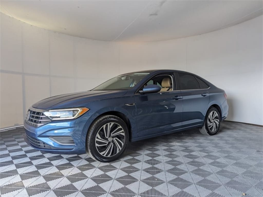 2020 Volkswagen Jetta SEL Blue Silk Metallic Clean CARFAX. Certified. FWD 8-Speed Automatic with Tiptronic 1.4L TSI Dark Beige Premium Synthetic.