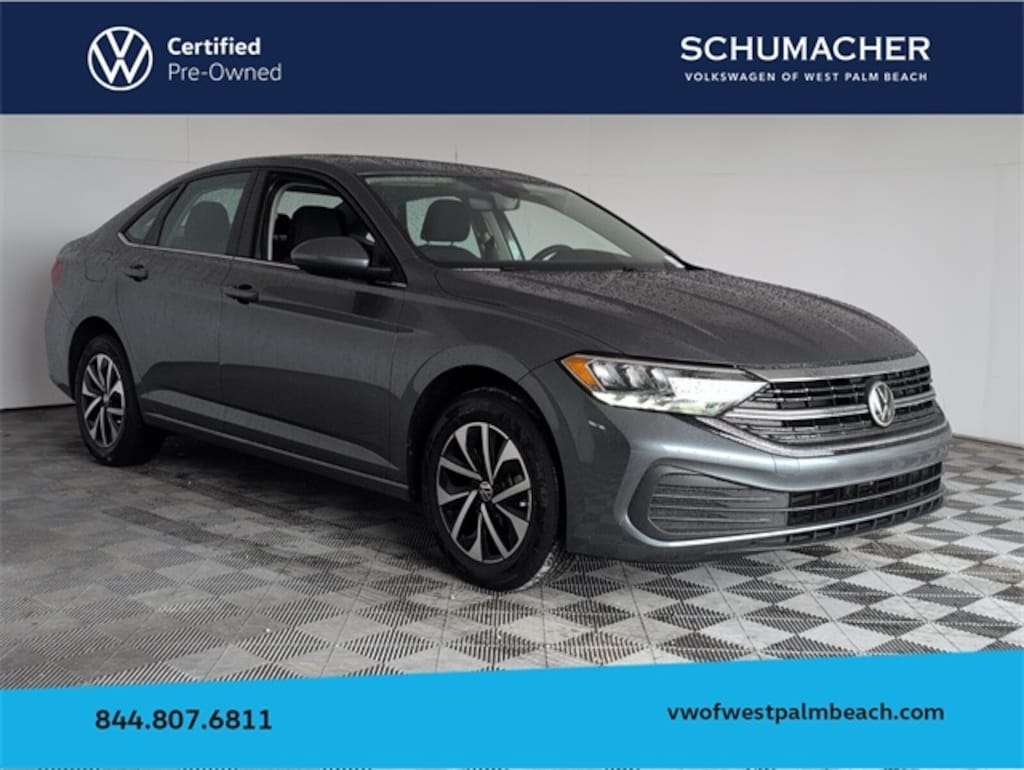 2022 Volkswagen Jetta 1.5T S Platinum Gray Metallic CARFAX One-Owner. Clean CARFAX. Certified. FWD 8-Speed Automatic with Tiptronic 1.5L I-4 DI DOHC Turbocharged Titan Black w/Cloth Seat Trim.